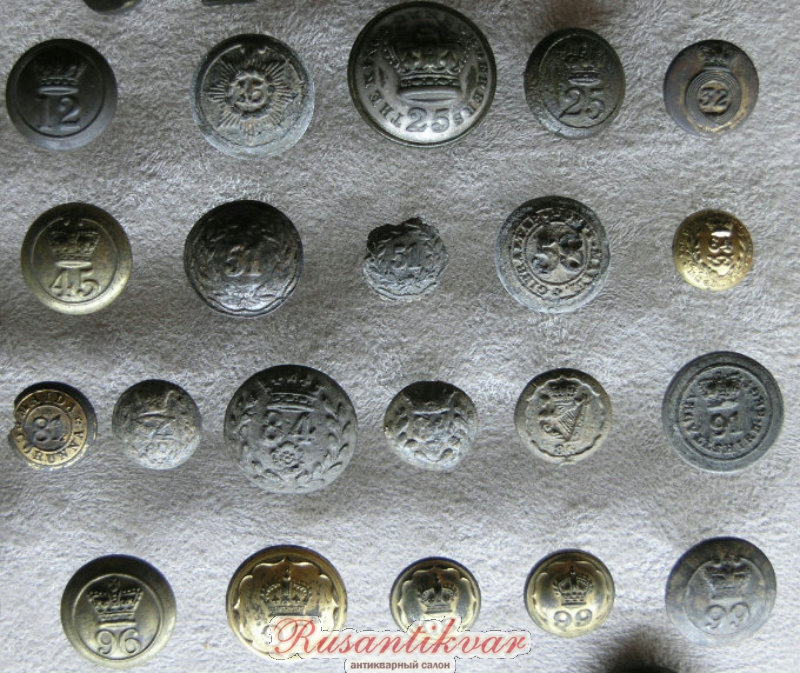Пуговицы пехотных полков, официально не принимавших участия в Крымской войне, найденных в Севастополе, из коллекции музея Шереметьевых.