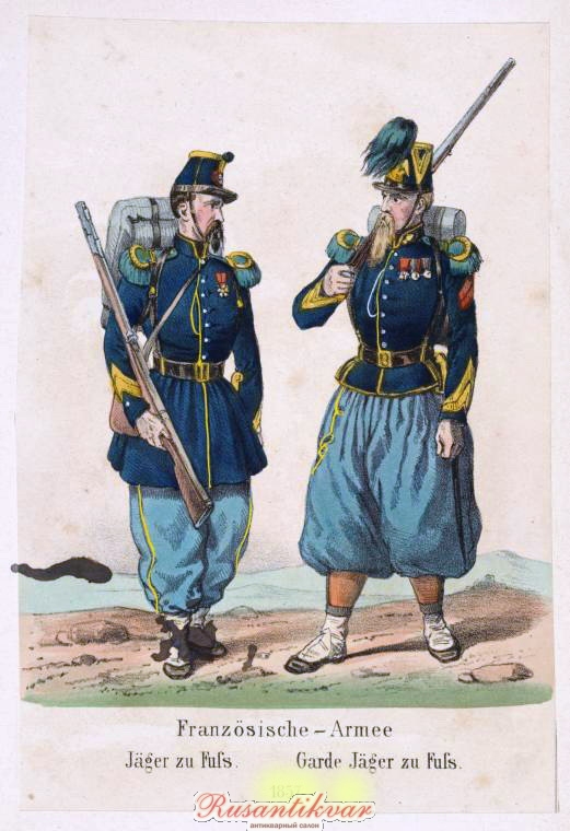 Для сравнения форменной одежды нижних чинов батальонов пеших стрелков и гвардейских стрелков.