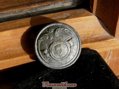 И еще одна пуговица офицера легкой пехоты с очень характерным повреждением лицевой стороны пуговицы...