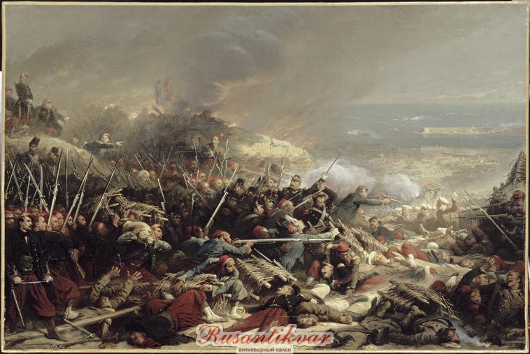 Фрагмент с французской картины. Штурм французами Малахового кургана ( большой Редан ) .