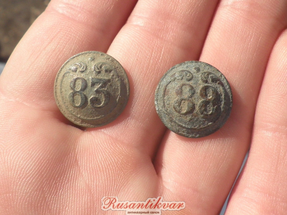 Маленькие пуговицы 83-го линейного полка ( до конца 1854 года 8-го легкого полка ) и 88-го линейного полка ( до конца 1854 года 13 легкого полка ).