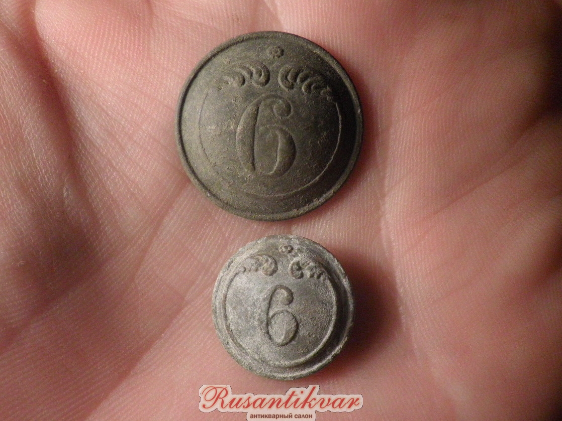 Большая и маленькая пуговицы нижнего чина 6-го линейного полка образца 1844-71 гг.