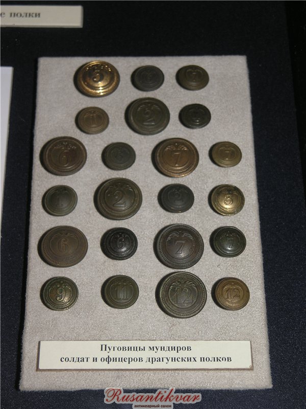 Пуговицы офицеров и нижних чинов драгунских полков из коллекции музея Шереметьевых