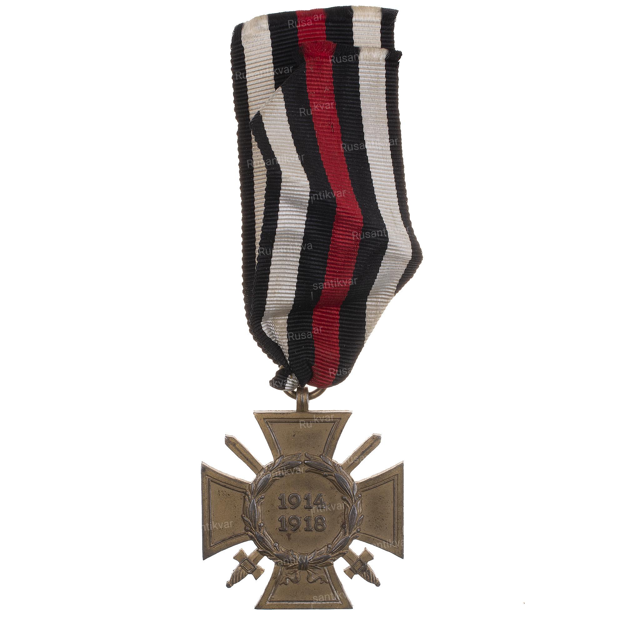 "Крест был учрежден Рейхс президентом Германии генерал-фельдмаршалом Паулем фон Гинденбургом 13 июля 1934 года, за что в народе и получил название Гинденбургский крест. Правильное же название — Почётный крест фронтовика «Ehrenkreuz des Weltkrieg», и явился первой официальной наградой Третьего Рейха. После учреждение этого креста, все остальные ветеранские награды были запрещены к ношению. Это был знак благодарности государства ветеранам воины за их ратные подвиги в Первой Мировой войне. Награда была выпущена в трех классах: 1. Крест Чести 1914-1918. — для комбатантов (с мечами); 2. Крест Чести 1914-1918. — для некомбатантов (без мечей); 3. Крест Чести 1914-1918. — черный, для вдов, сирот или родителей погибших воинов. Разработка была поручена фирме Gebr. Godet & Co. Крест для комбатантов и некомбатантов носился на черно-бело-черно-красно-черно-бело-черной ленте, Крест для вдов, сирот или родителей погибших воинов носился бело-черно-бело-красно-бело-черно-белой ленте. Гинденбургский крест вручался с наградным удостоверением. Для высокопоставленных награжденных крест упаковывался с специальную коробку. Внутри — изображение факсимиле Гинденбурга и надпись готикой «TREUE UM TREUE». Право на получение креста имели все жители Рейха и все этнические немцы присоединенных территорий, принимавшие участие в Первой Мировой войне. Последнее награждение датируется сентябрем 1944 года. Всего было вручено 6 202 883 крестов с мечами, 1 120 449 крестов без мечей, 345 132 для вдов, 373 950 родственникам погибшим. В колодке Крест располагается перед наградами о выслуге и аншлюс-медалях."