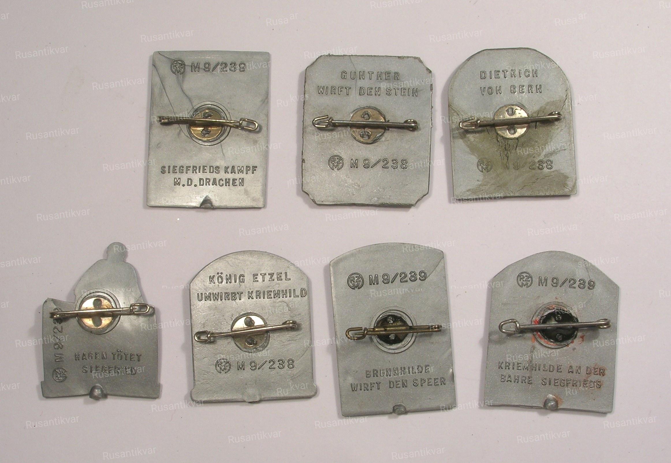 Редкая Серия !!!! WHW (Зимняя помощь) 1939/40. Лот пластиковых значков: Сага о Зигфриде. 7 штук .