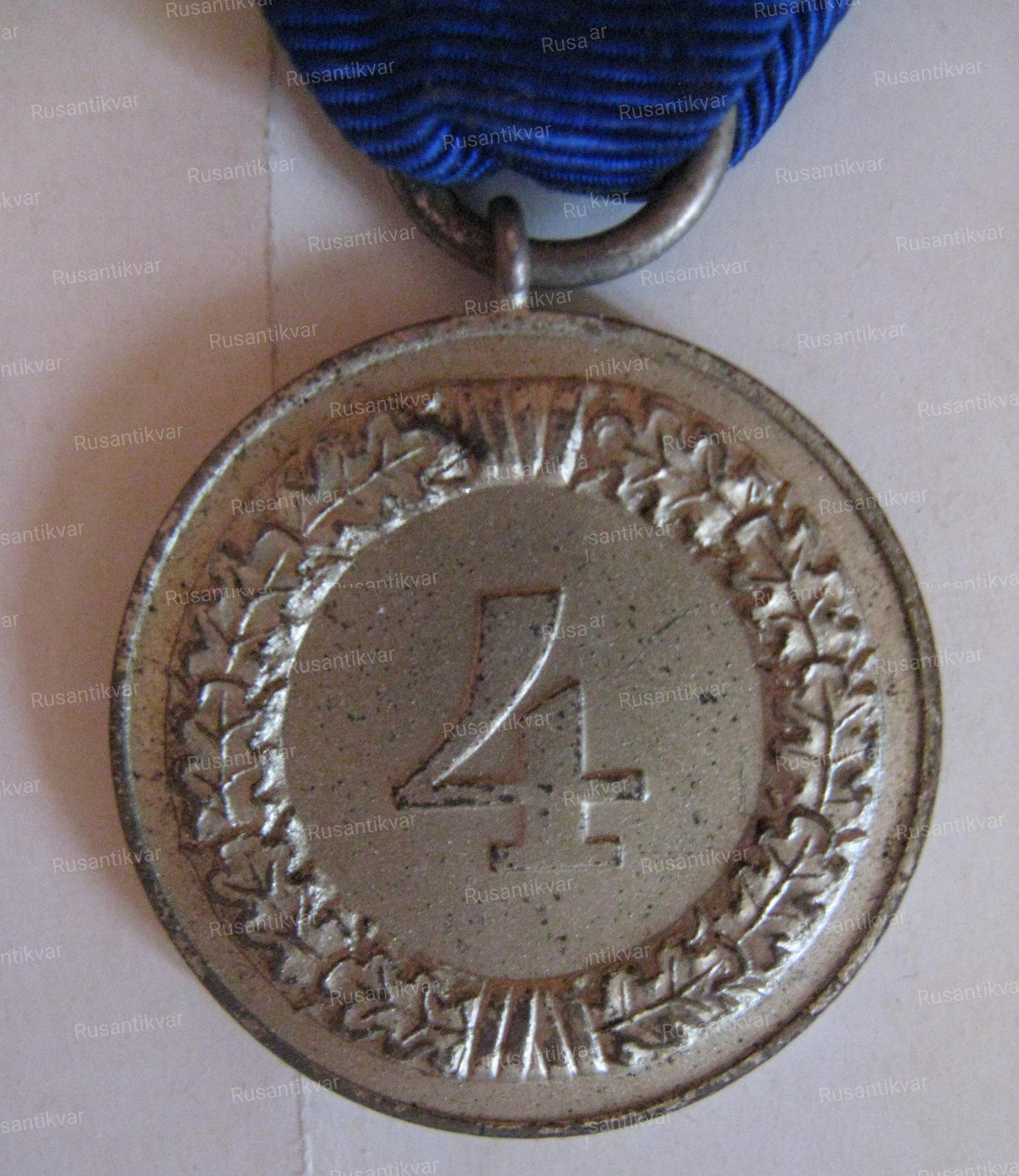 Знаки 4-го и 3-го классов изготовлялись из томпака или железа в форме круглой медали с выступающим бортиком, имевшей покрытие серебристого (4-й класс) или светло-бронзового (3-й класс) цвета. На аверсе медали имелось рельефное изображение орла с опущенными крыльями, держащего свастику, обрамлённое идущей слева направо вдоль верхней части окружности надписью готическими шрифтом: нем. Treue Dienste in der Wehrmacht — «Верная служба в вермахте»). На реверсе изображались рельефные цифры, обозначающие число лет выслуги (4 и 12 соответственно), в круглом венке из дубовых листьев. В верхней части медали имелось ушко для крепления кольца с лентой.