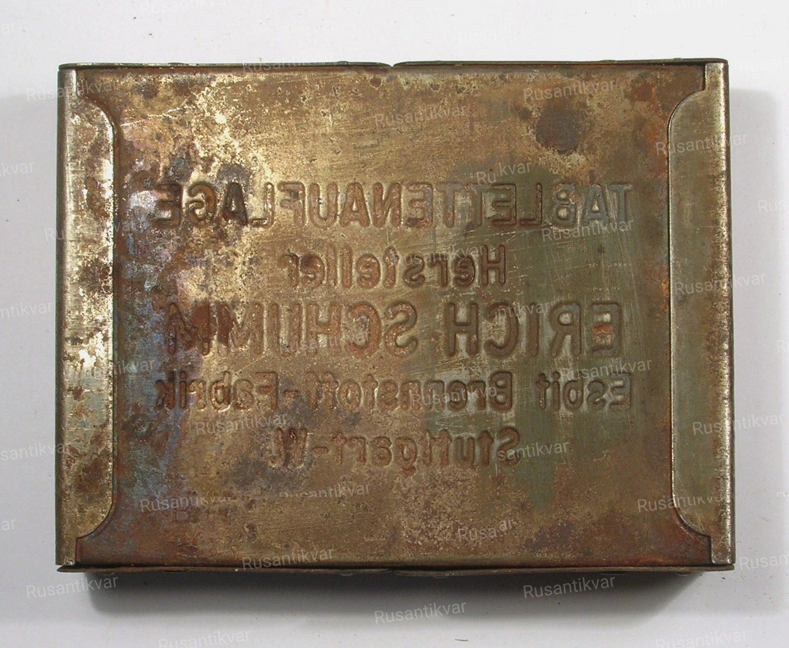 Алюминиевый призовой портсигар: чемпионат по шахматам. 117 лагерь. Творчество военнопленных немцев.
