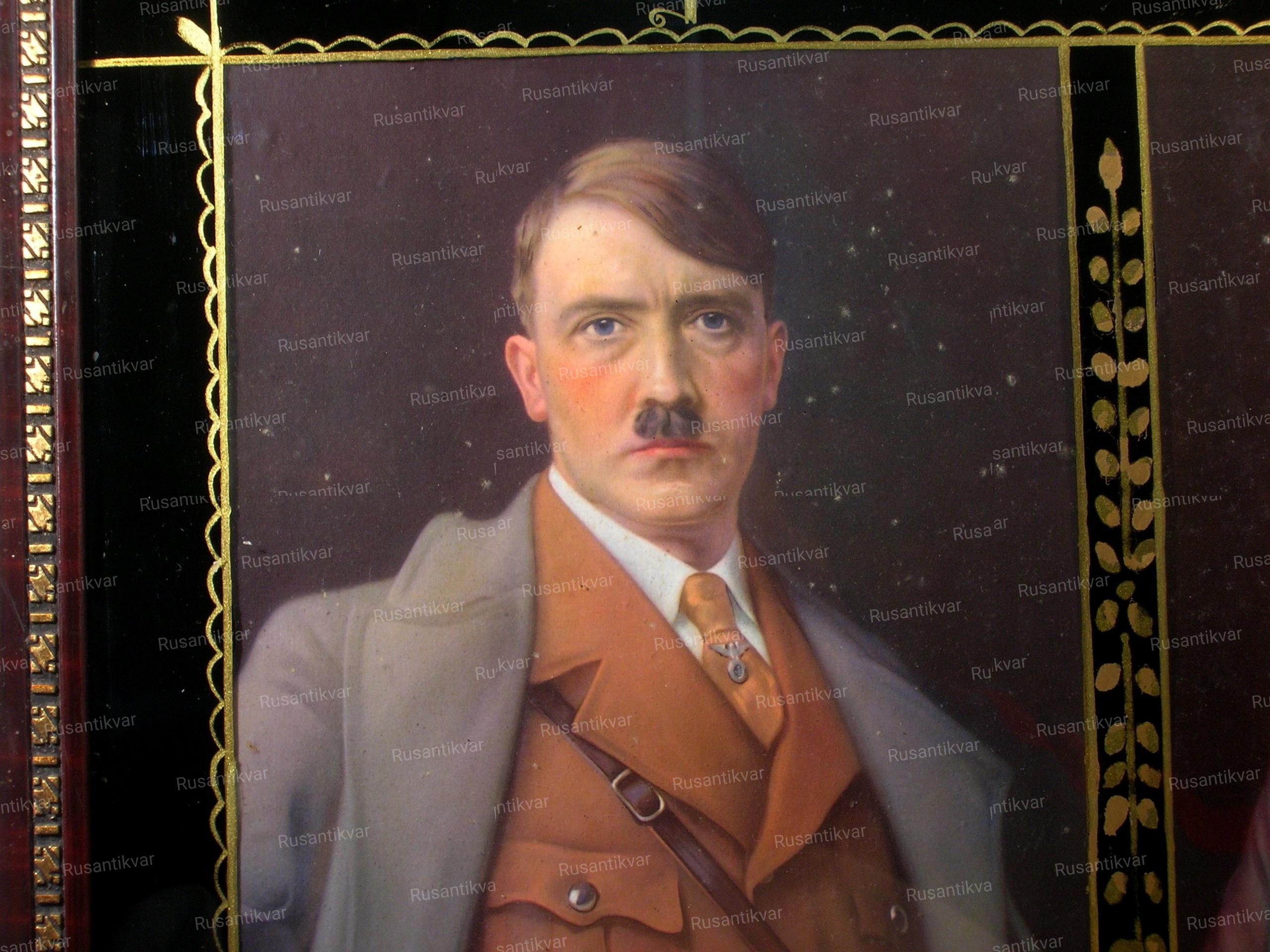 Портрет с Фюрером и Гинденбургом. Размер вместе с рамой 39х47 см. Сами изображения - типографская печать, плюс ручное оформление.