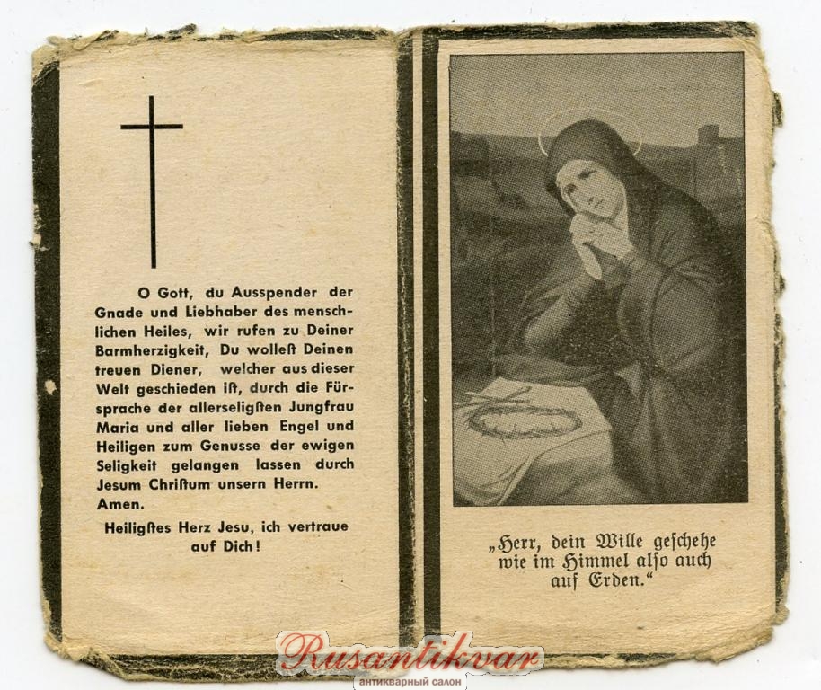 Поминальная карточка - Ефрейтор. сапёр. Погиб на Востоке .