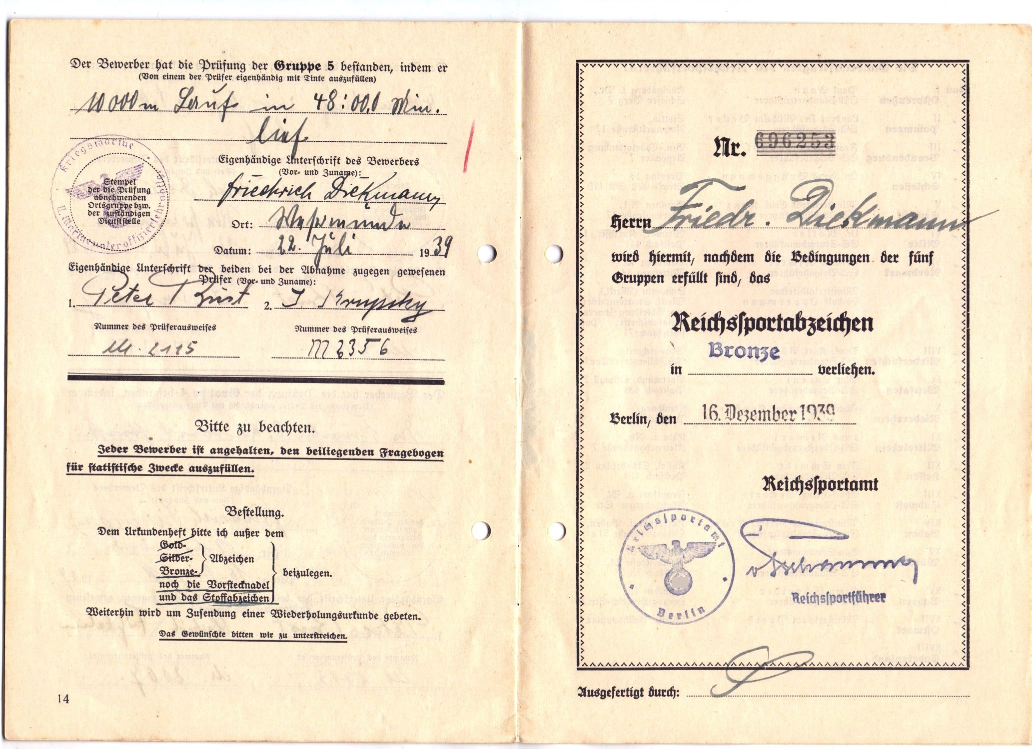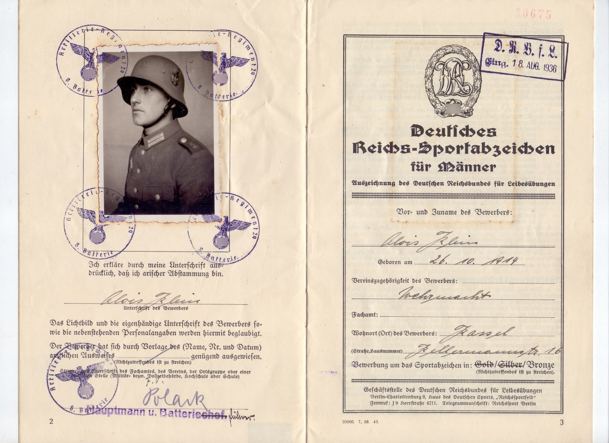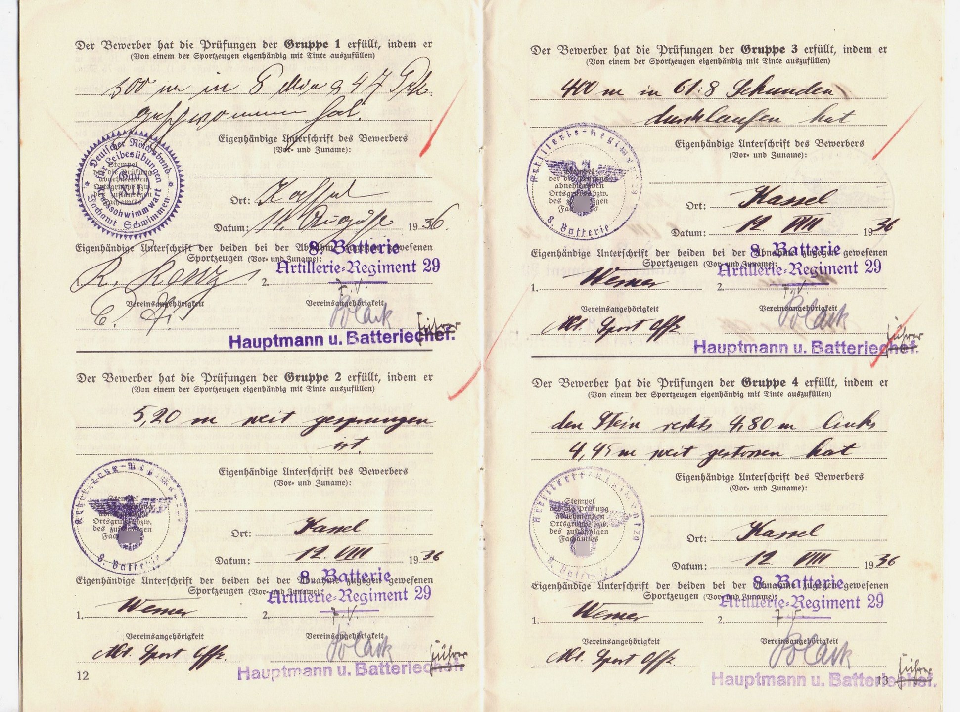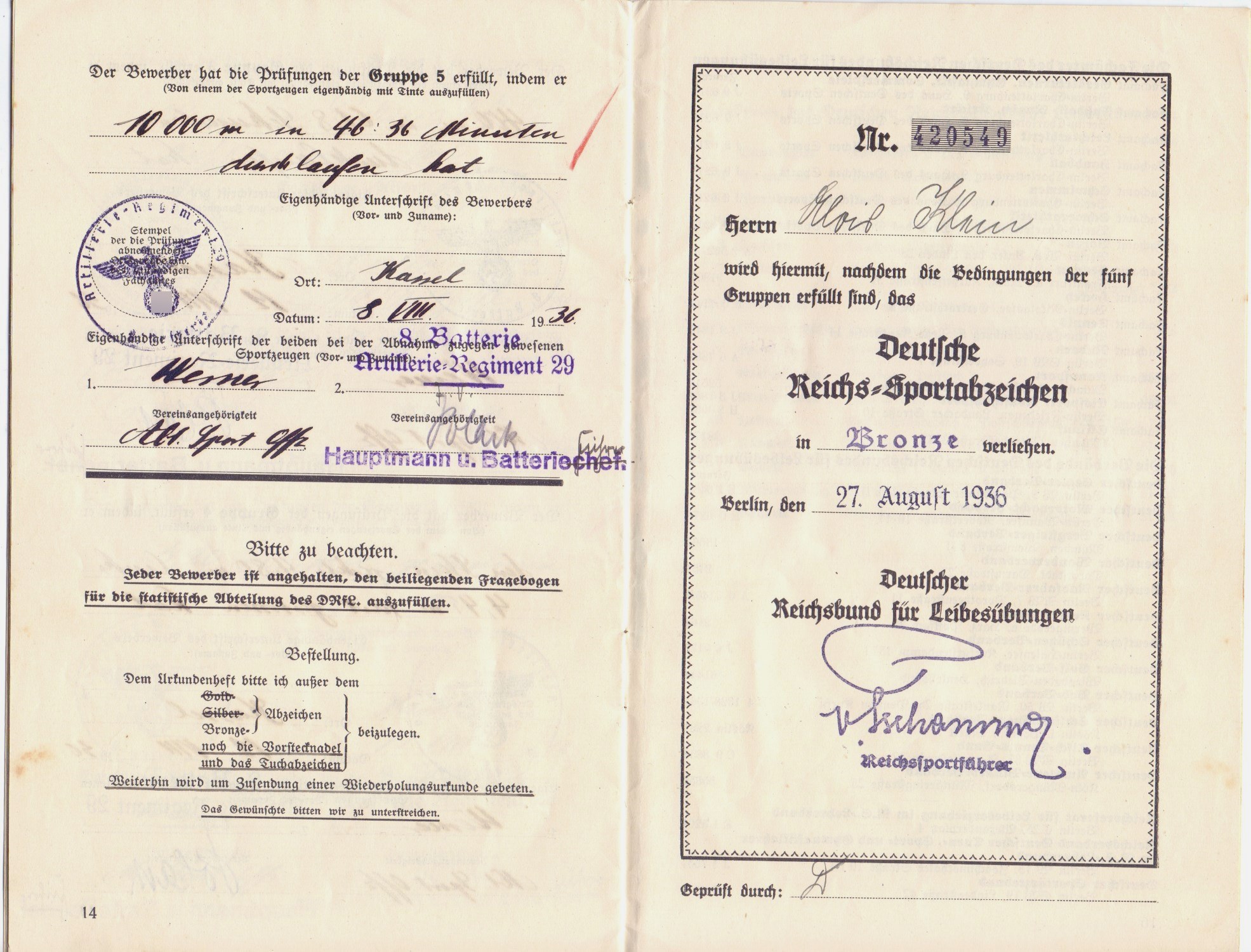 НАГРАДНАЯ КНИЖКА АРТИЛЛЕРИСТА (РАННИЙ ВЕРМАХТ) НА СПОРТИВНЫЙ ЗНАК D R L в БРОНЗЕ.