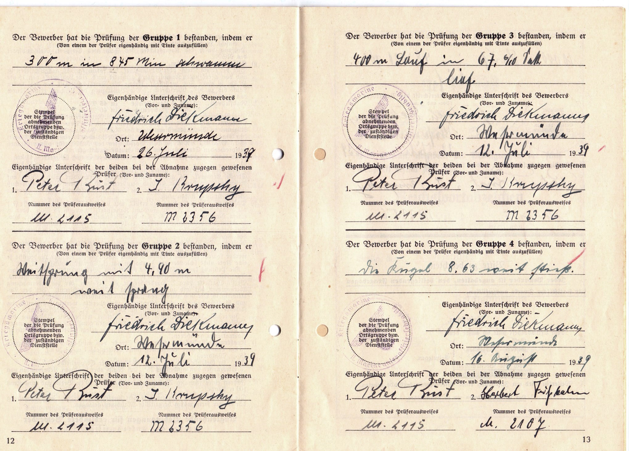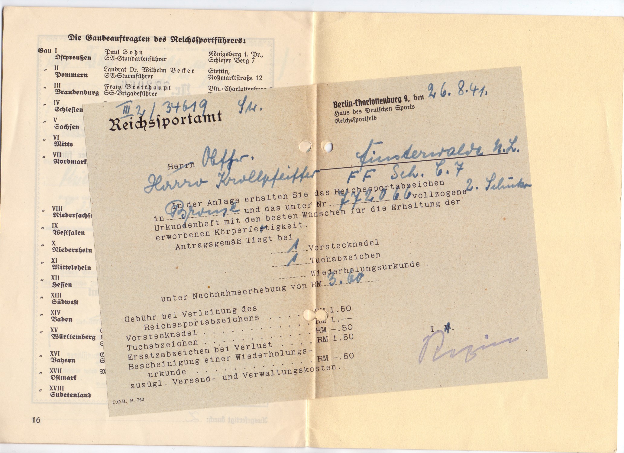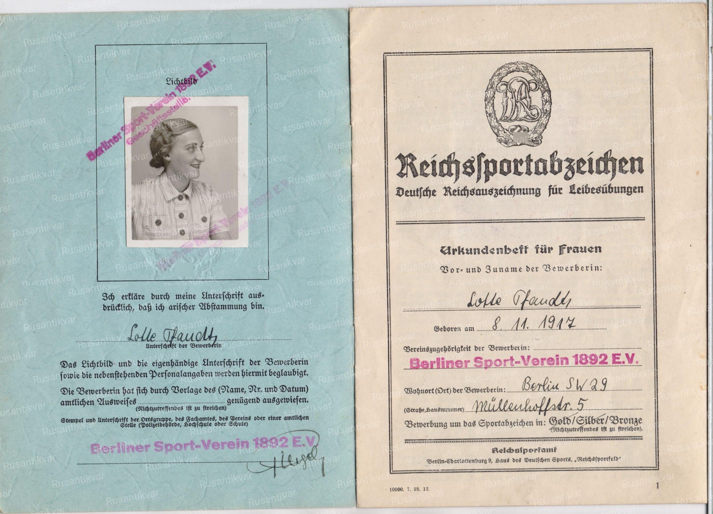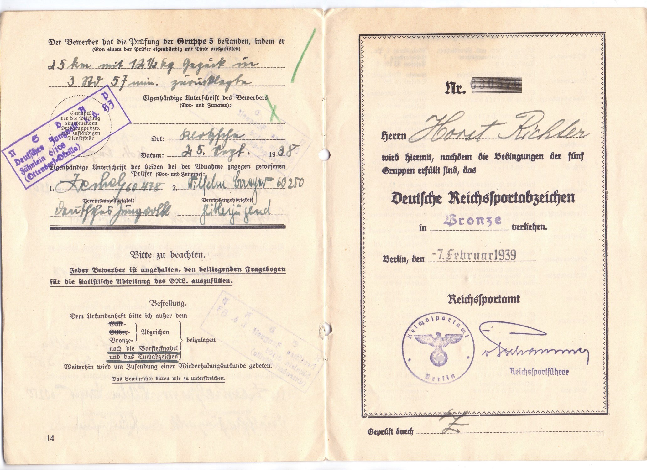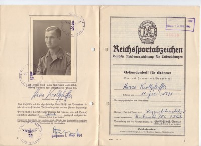 НАГРАДНАЯ КНИЖКА АРТИЛЛЕРИСТА (РАННИЙ ВЕРМАХТ) НА СПОРТИВНЫЙ ЗНАК D R L в БРОНЗЕ.