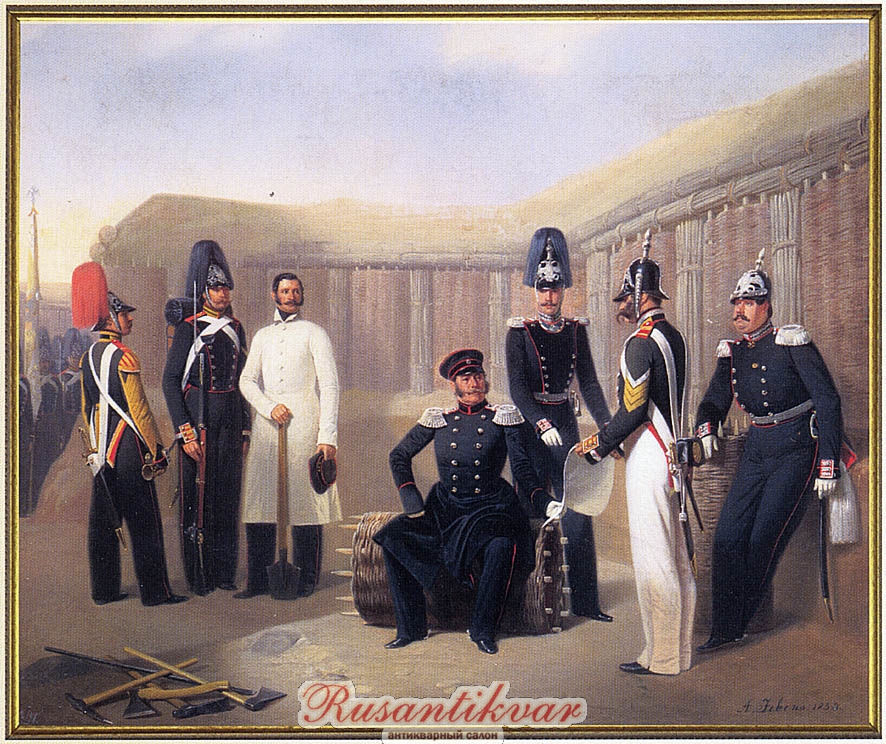 Чины лейб-гвардии Сапёрного батальона, 1853 год. Крайний справа — полковник Н. К. Зацепин. Картина работы А. Гебенса (Музей Суворова в Санкт-Петербурге). Во время Крымской войны Зацепин Н.К. командовал 3-м сапёрным батальоном, принимал деятельное участие в укреплении Севастополя и его обороне, где в ночь с 10 на 11 мая 1855 года был убит наповал двумя пулями во время ночных работ перед 6-м бастионом.