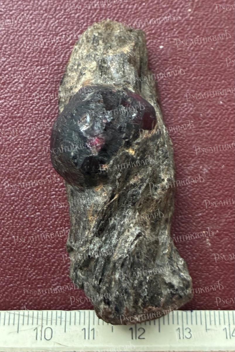 Кристалл Альмандина ( разновидность граната) в слюдистой породе.Россия,Карелия.