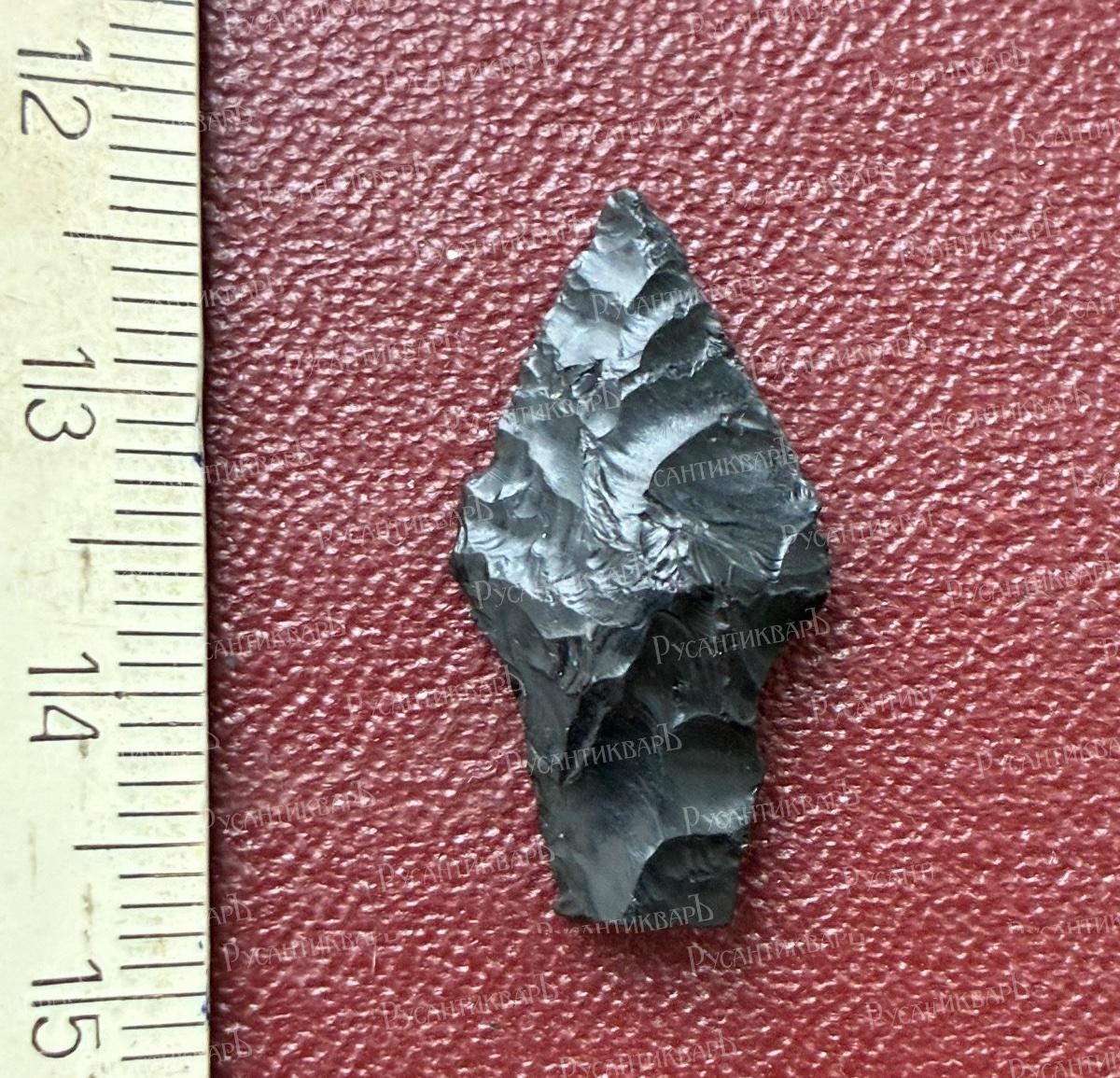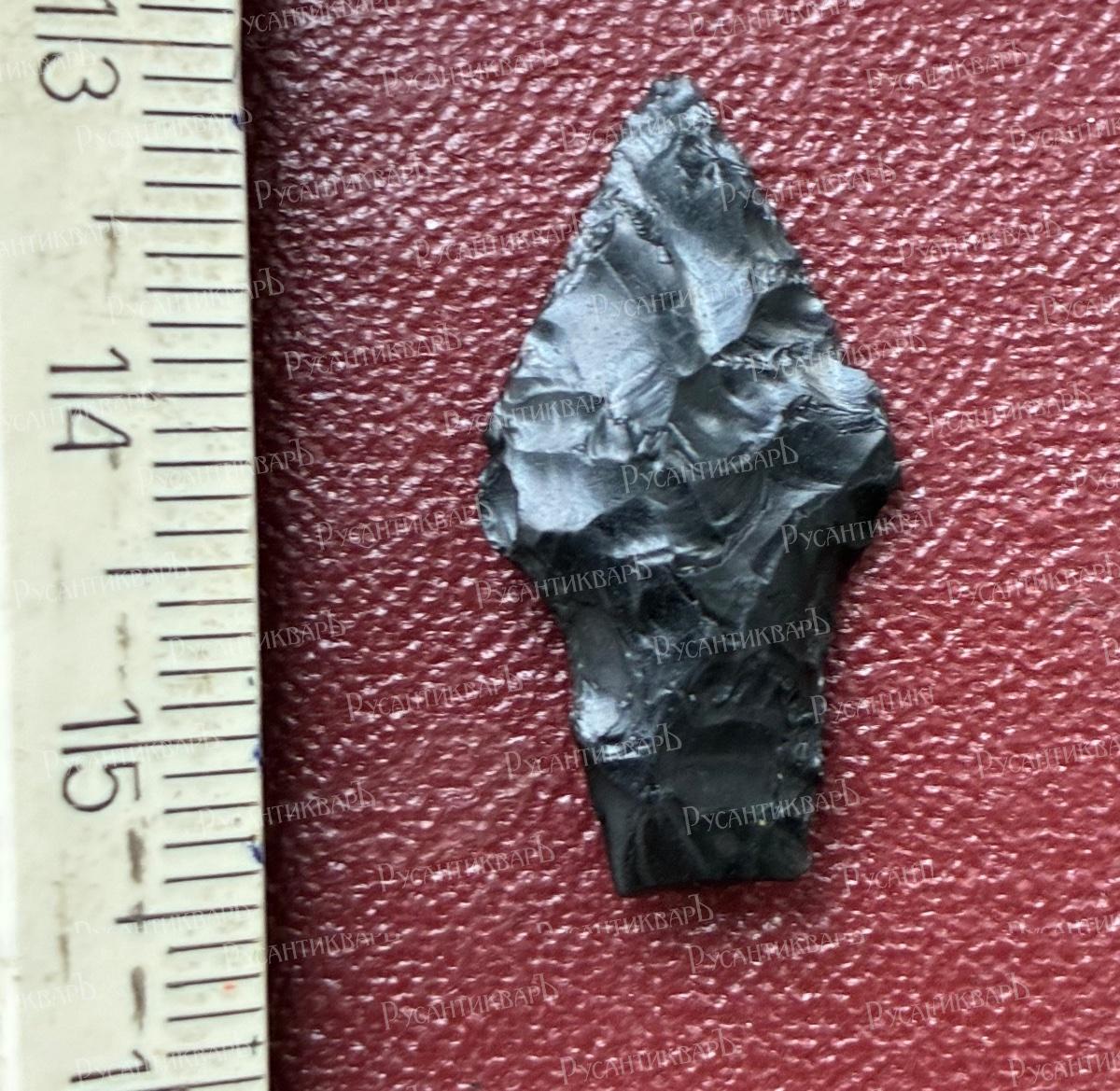 Обсидиановый наконечник стрелы.находка 1981 года.Россия Дагестан,Левашинский район селения Мекеги, река Капрах. Куро-араксская археологическая культура?.
