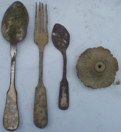 Справа венчик от подсвечника, ну а ложки и вилка в атрибуции не нуждаются.