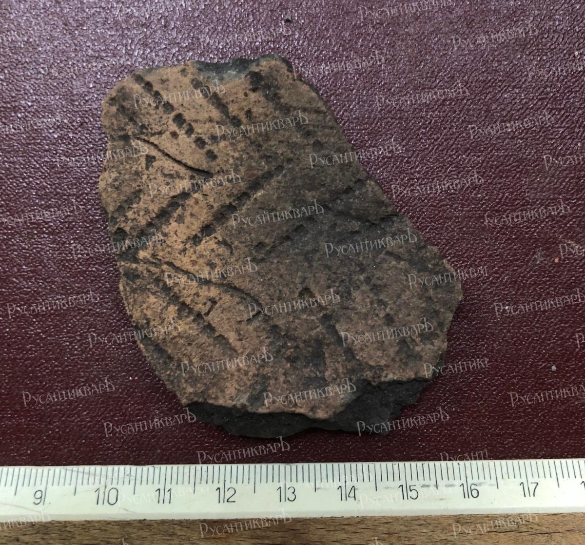 Фрагмент керамики Льяловской неолитической культуры.Озеро Сомино Переславль-Залесского района Ярославской области.