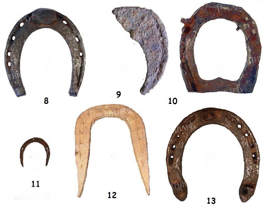 * Образец №10: Подкова XIX-XX вв. (Данный образец относится к варшавскому типу подков. Применялась для подковывания лошадей, выполнявших гужевые работы. Занесена в период Отечественной Войны 1812 года. После присоединения Польши к России (в 1815 году) применялась повсеместно).