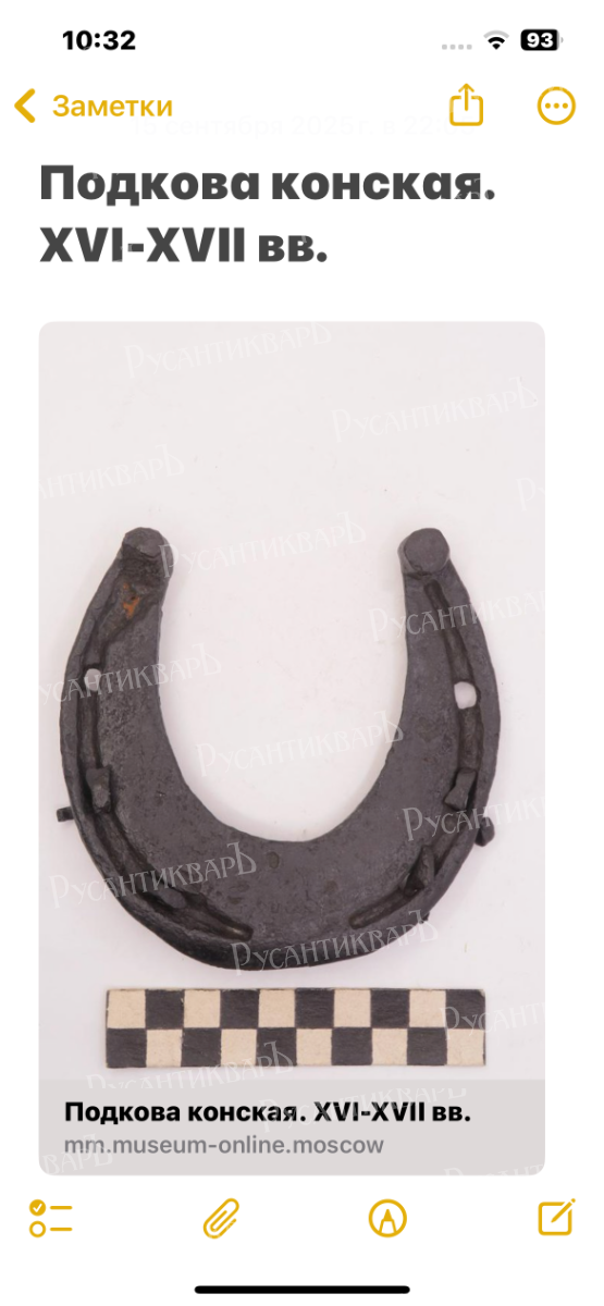 Аналогичная подкова найденная в Московском Кремле.Фото и информация с сайта Музей Москвы.