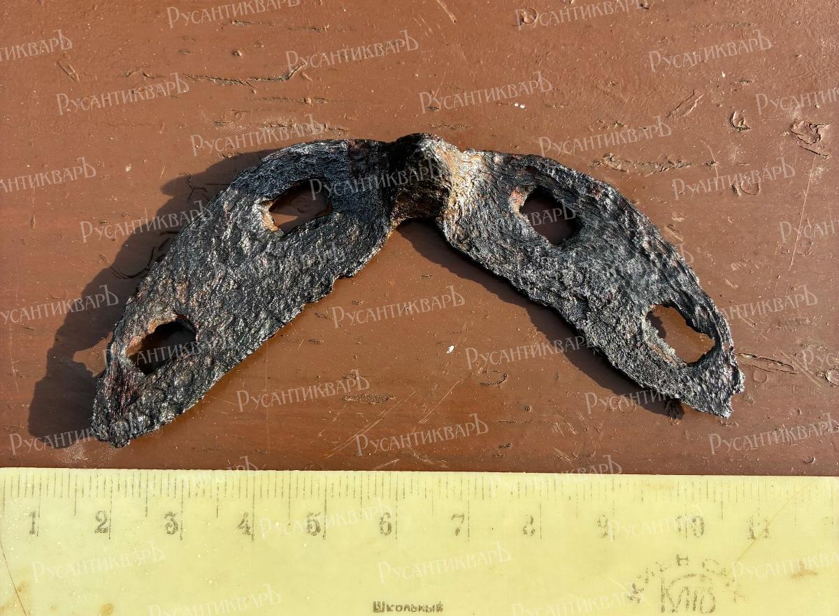 * Образец №6: Подкова XVI-XVII вв. (Данная подкова относится к центральноевропейскому типу подков. Отсутствие шипов на данном образце, не свойственно для русской традиции. Роль шипов в этом случае выполняет проделанная по всему контуру гвоздевая дорожка).
