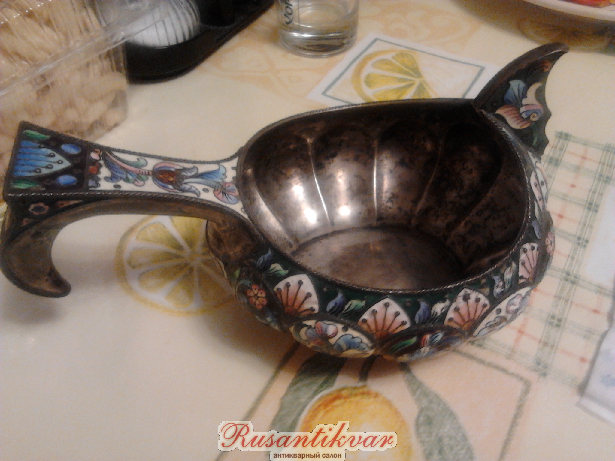 Коллеги подскажите цену на данный серебряный ковш!? Ковшик размером с ладонь, эмаль без сколов, Царские клейма.Цена очень нужна, хочу купить его у одной бабушки, она думает, что он стоит целое состояние! 8-)