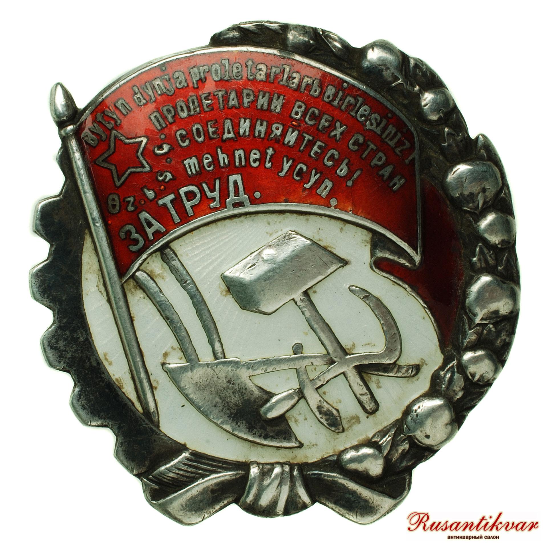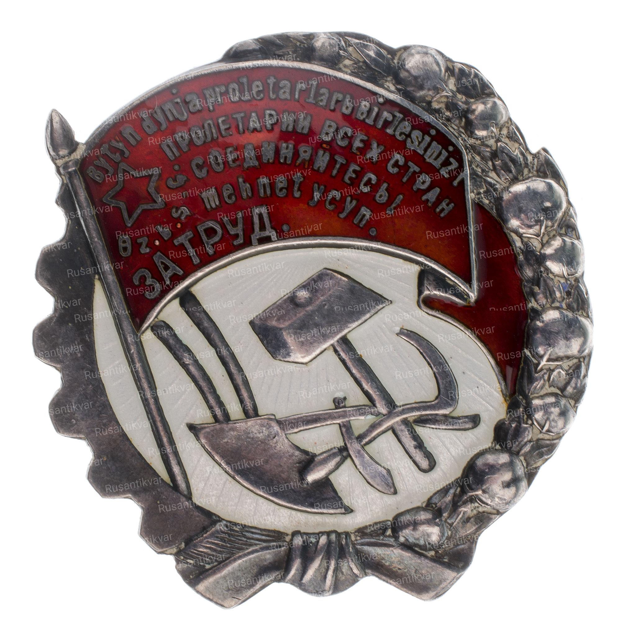 Дважды, 3 января и 20 марта 1926 года Президиум ЦИК Узбекской ССР утверждал предлагаемые Секретариатом изменения внешнего вида орденского знака. В итоге к символике узбекского ордена добавился урак (среднеазиатское сельскохозяйственное орудие ручного труда), а на знамени вместо надписи на узбекском языке «Орден Трудового Красного Знамени» появились два слова на русском языке: «ЗА ТРУД».