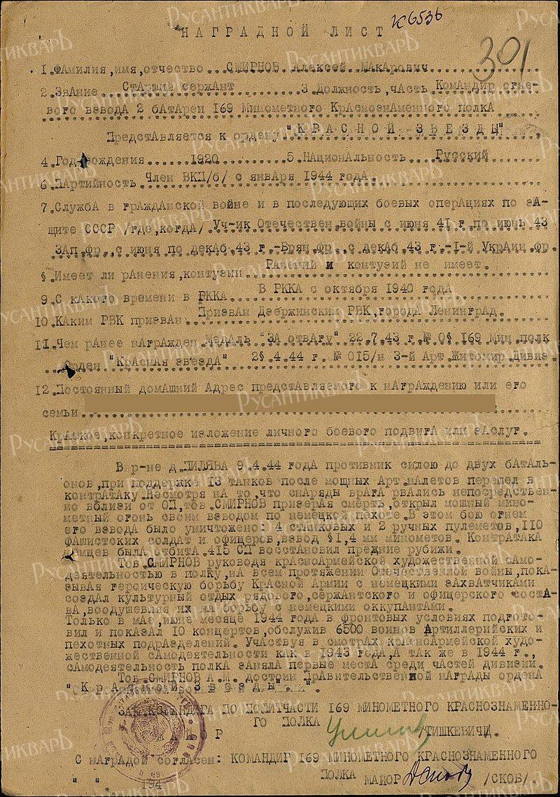 Он также дошел до Одера, но из-за сильной контузии, полученной от взрыва снаряда, был комиссован. За доблестную службу и подвиги актер был награжден медалью "За отвагу", орденом Красной звезды, двумя орденами Славы II и III степеней, а также медалью "За боевые заслуги".