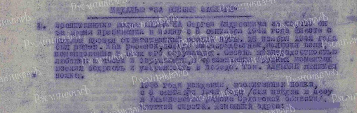 Осенью 1942-го полк Сережи принимал участие в защите Сталинграда. Наш маленький герой, самый юный защитник города у Волги, снова отличился. Когда блиндаж комполка завалило взрывов вместе с командиром и другими офицерами, побежал, позвал на помощь...