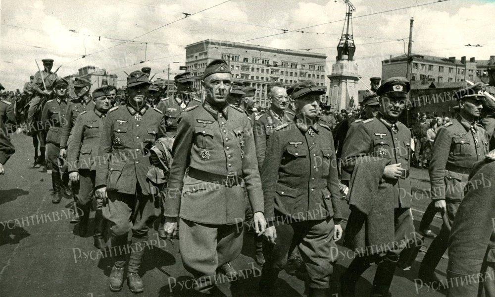 Все это действие получило название "Большой Вальс". Говорят, название ей дал лично Сталин, который, как известно, любил кинематограф. Так называлась американская комедия о жизни и творчестве австрийского композитора Иоганна Штрауса. Видимо движение немцев кругами по Садовому кольцу как нельзя точно подходило к теме вальса.Утром 17 июля 1944 года военнопленных еще раз накормили горячей кашей. Правда, привести себя в порядок возможности у них по-прежнему не было. Так что по улицам Москвы им предстояло идти немытыми и оборванными. После завтрака немцев разделили на две колонны. В первую группу попали все офицеры, в том числе 19 генералов, которым оставили даже их военные награды и форму. Их поставили во главе колонны и в 11 утра прозвучал сигнал к началу движения.