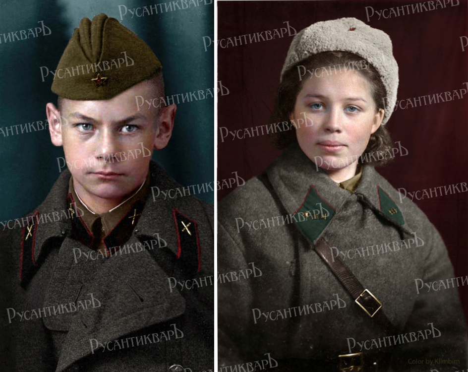 Юные защитники Москвы Юрий Ульянин (15 лет) и санитарка Екатерина Румянцева.
