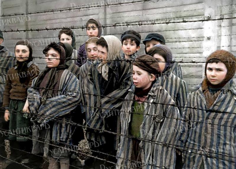 1945, январь. Дети в Освенциме (Аушвице).