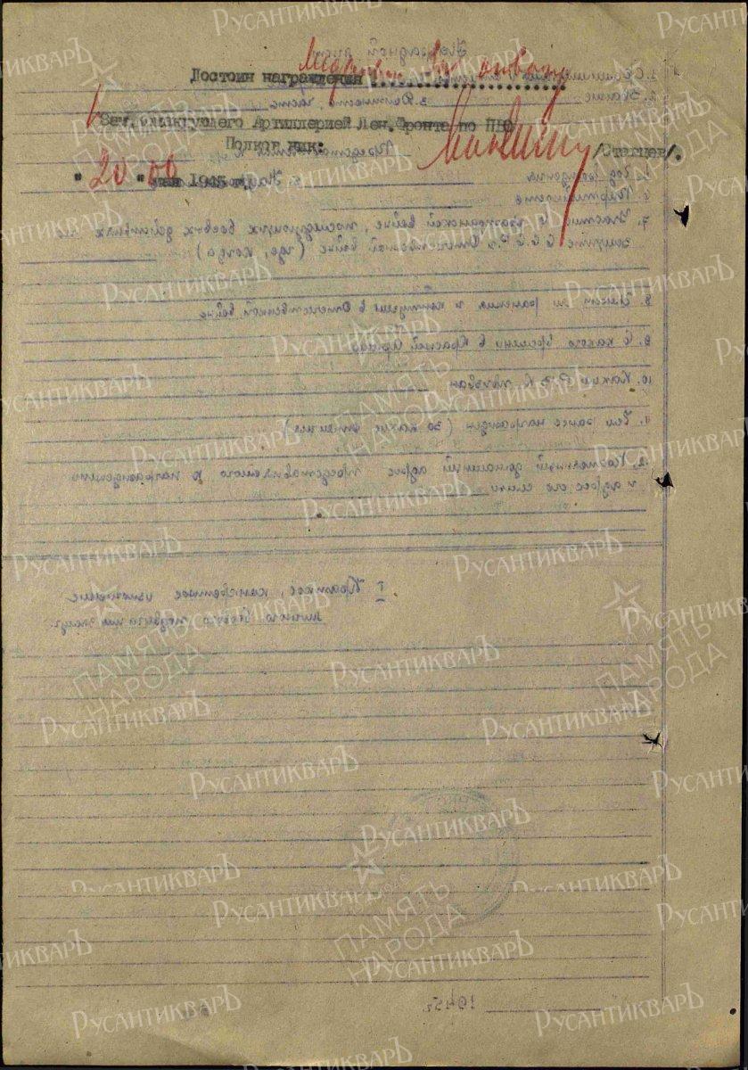 1.Орден Отечественной войны II ст. (посмертно) (1944).