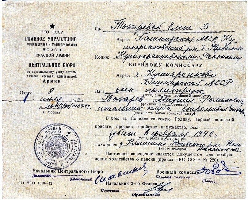 Случалось, что «похоронку» оформляли ошибочно, полагая, что человек погиб.