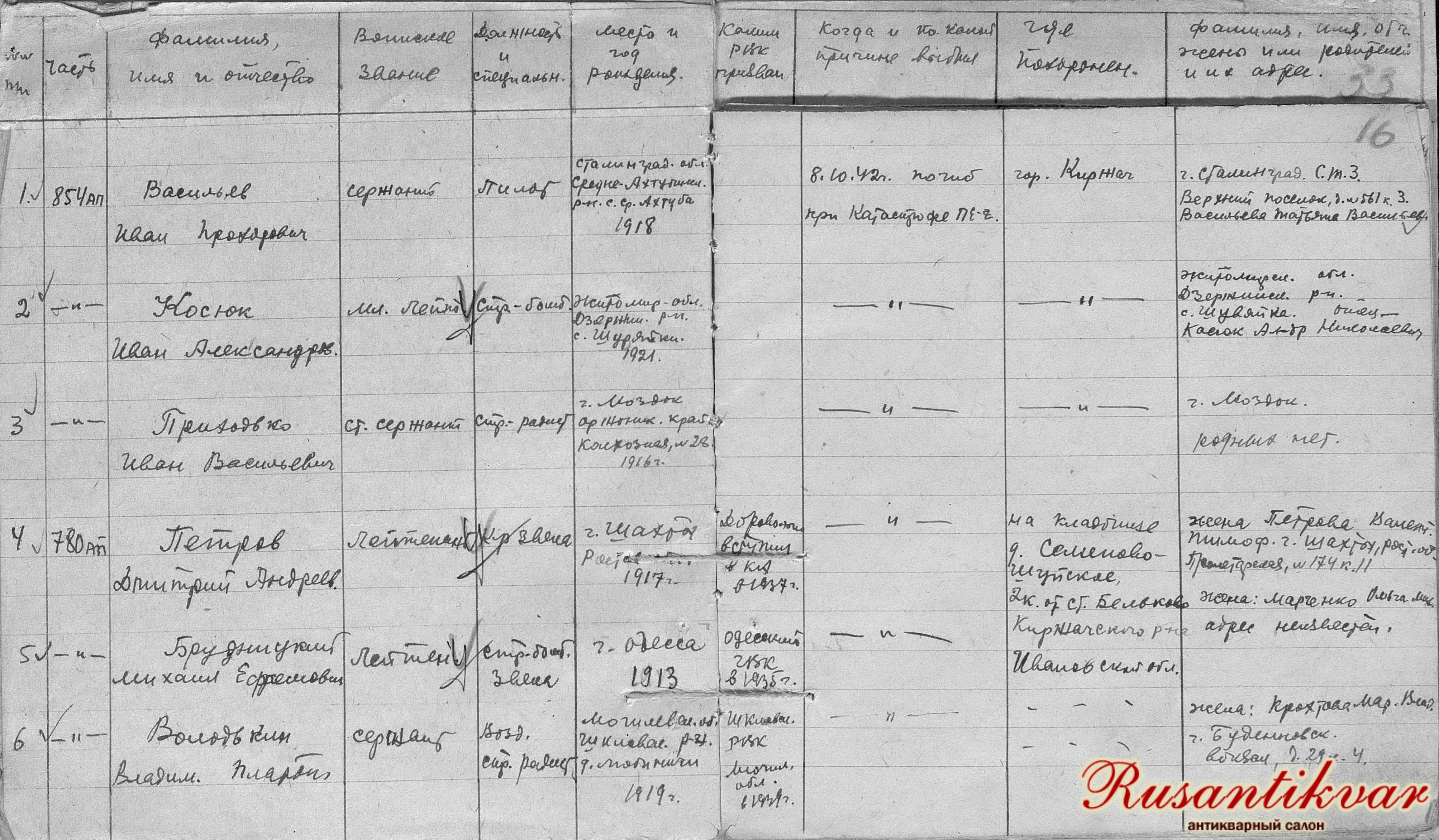 - Петров Дмитрий Андреевич, 1917 г.р., Ростовская обл., г. Шахты. Лейтенант, командир звена 780-го БАП;