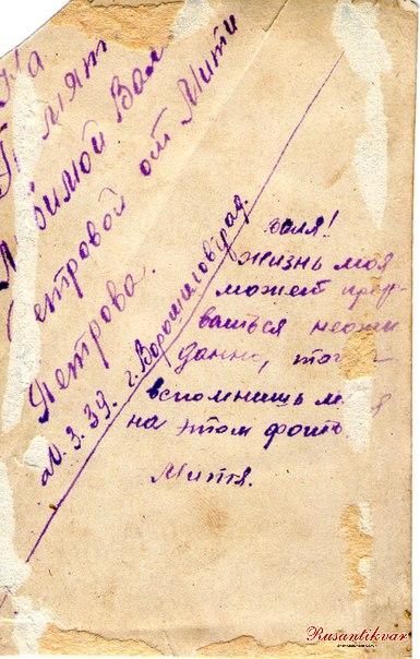 7. Оборотная сторона фотокарточки Дмитрия Петрова.