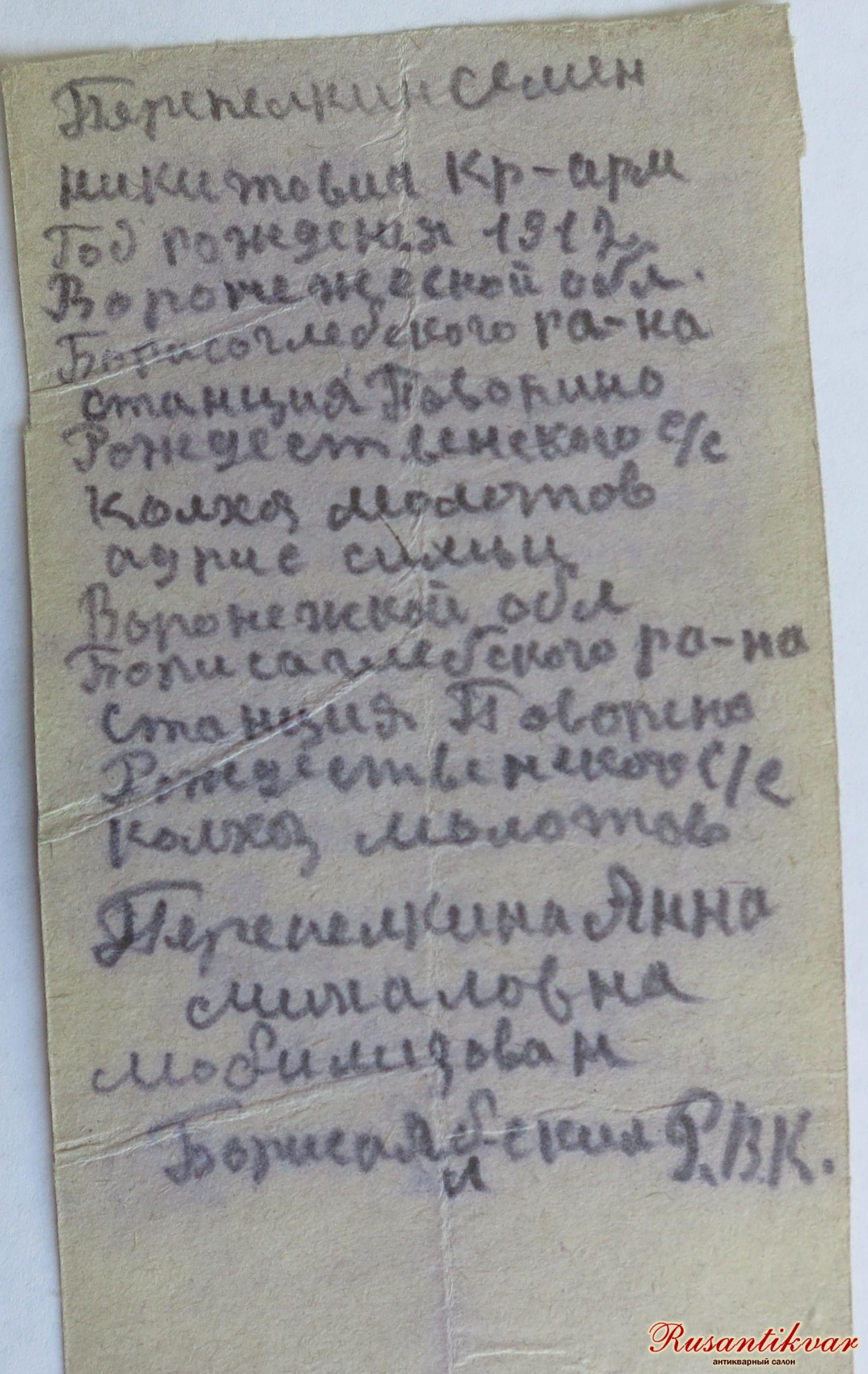 3. Сохранившийся бумажный вкладыш из медальона красноармейца