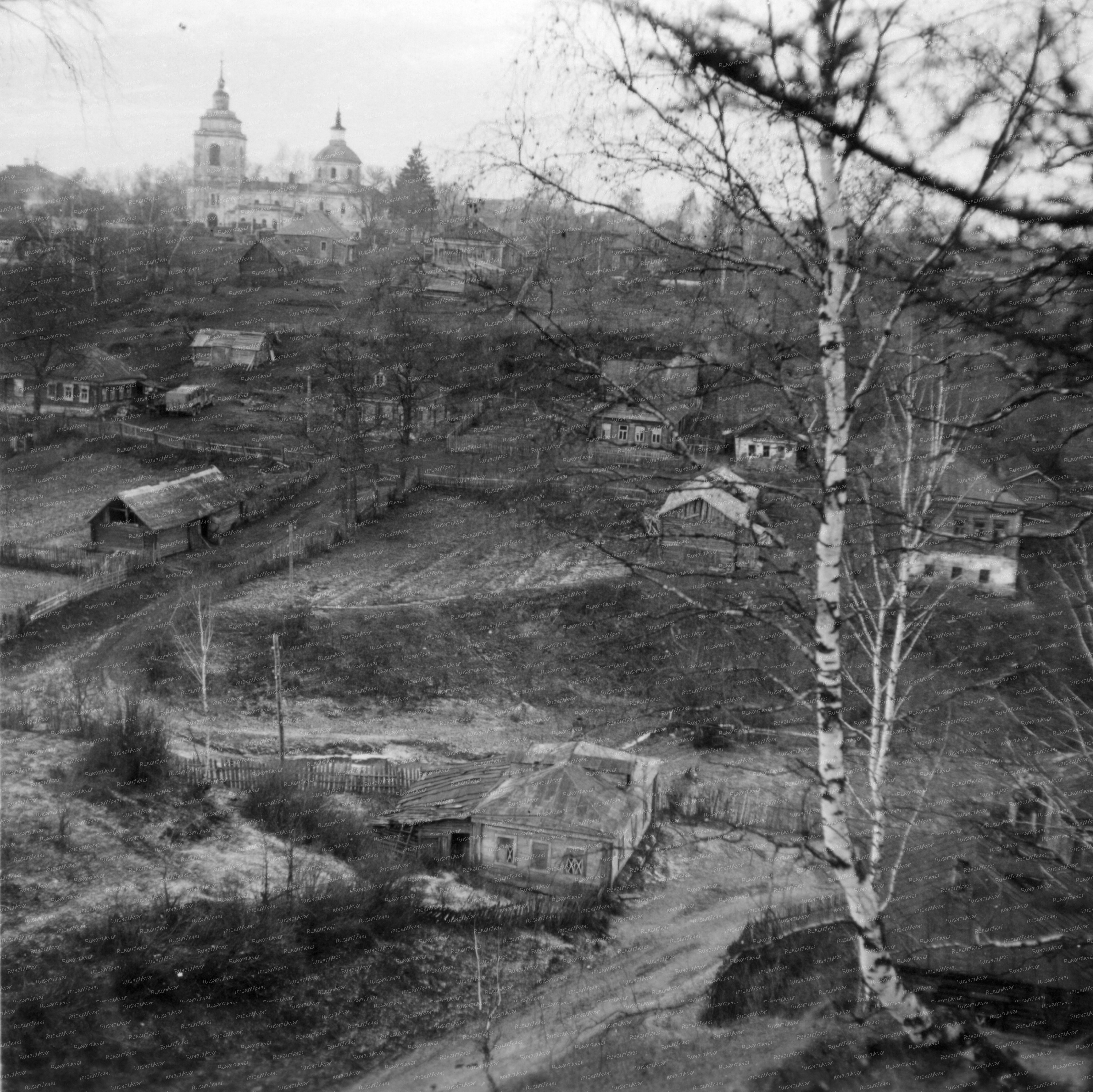 3. Руза. Вид с городка на церковь Покрова Пресвятой Богородицы. У церкви и домов видна техника 10-й танковой дивизии.