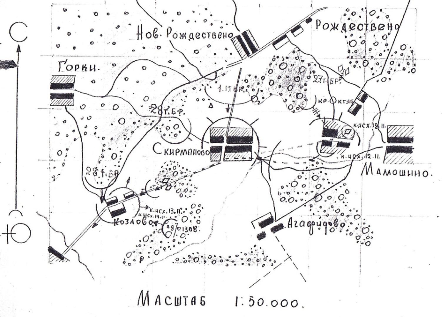 2. Схема расположения танковых бригад РККА в наступлении в районе Скирманово.