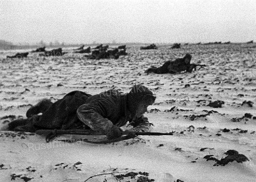 4. Красноармейцы под огнём противника продвигаются вперёд (РГАКФД).