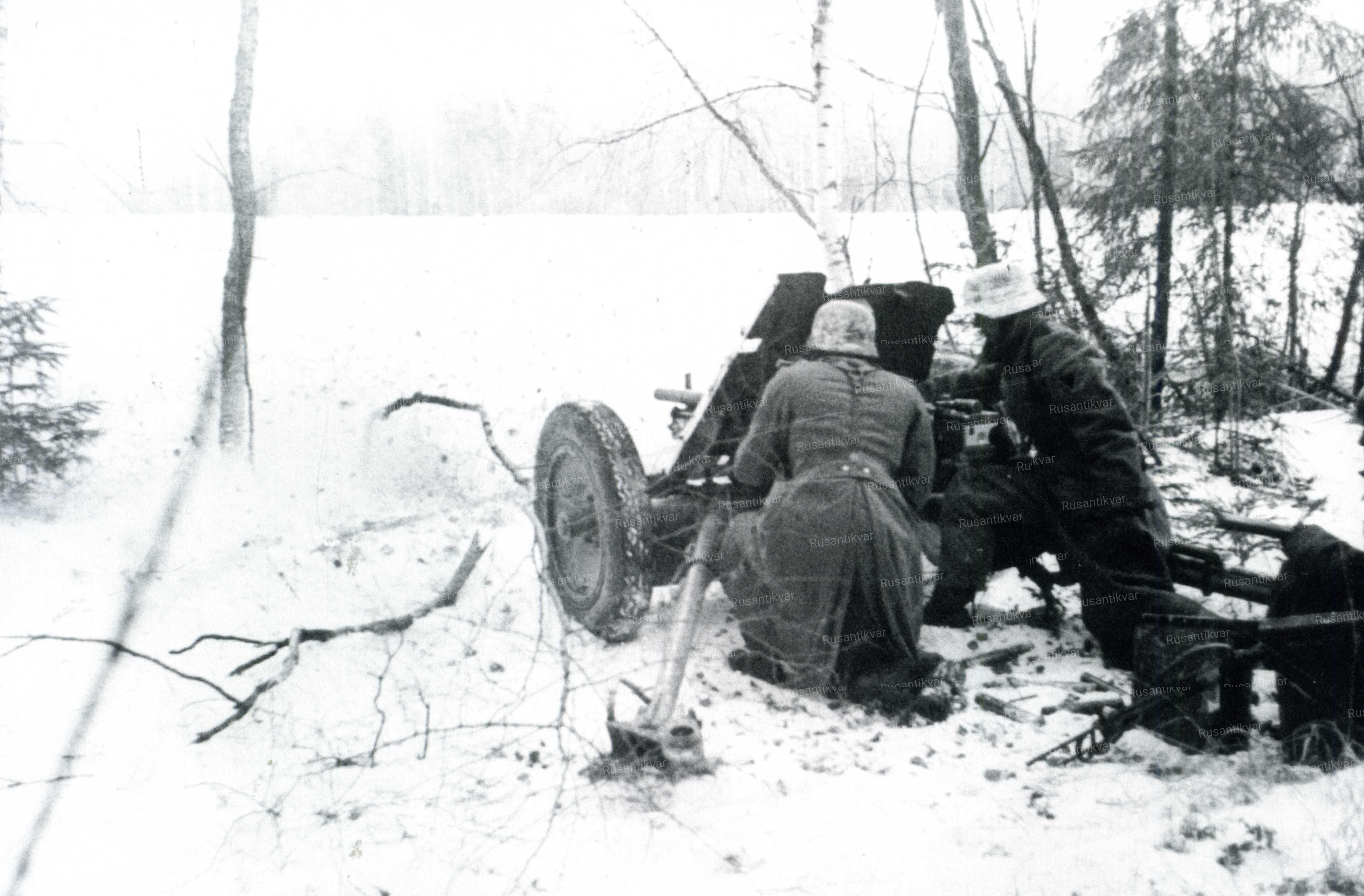 12.Расчёт 45-мм противотанкового орудия бойцов РККА на огневой позиции (РГАКФД).