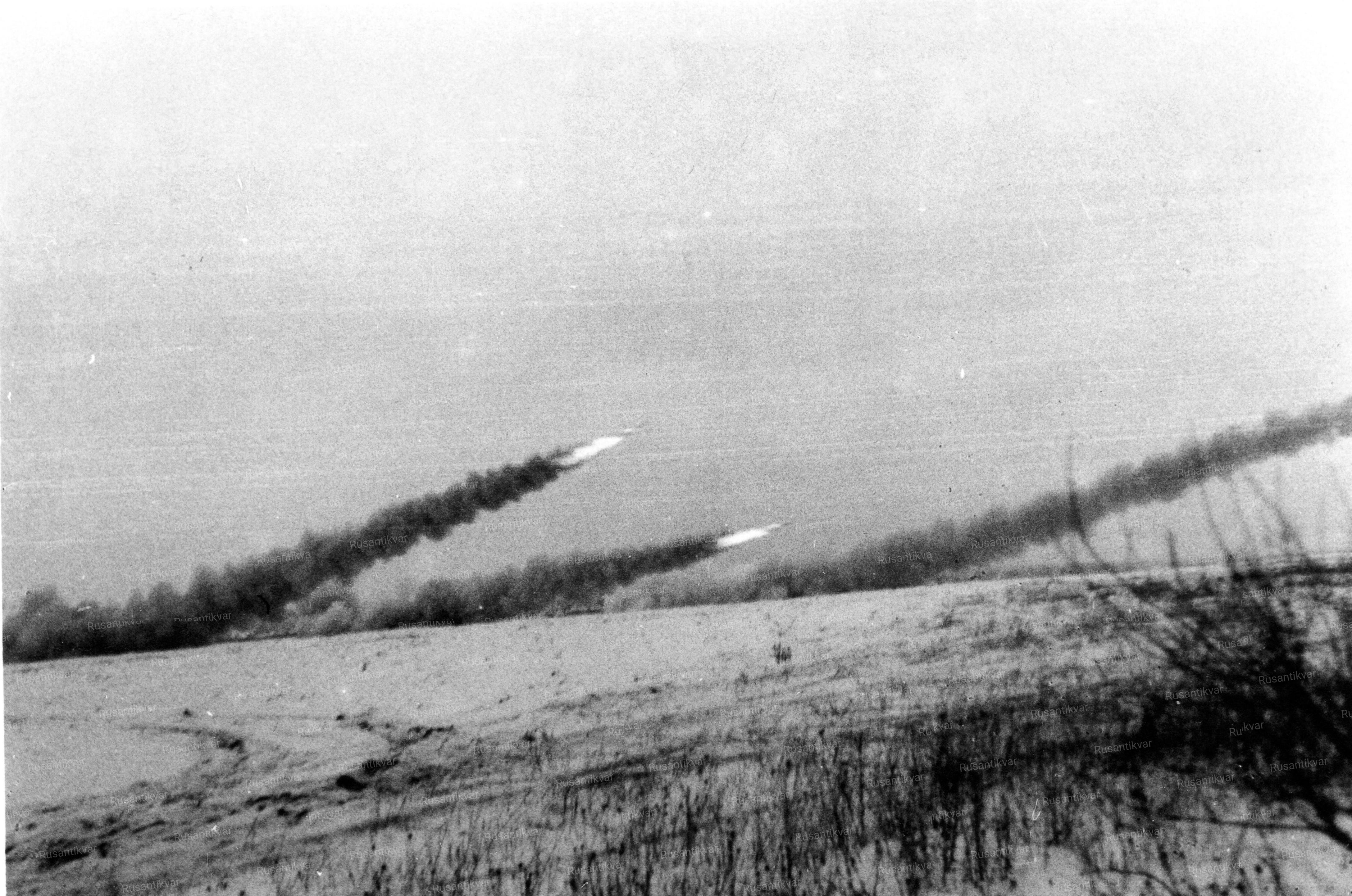 10. Залп немецких реактивных шестиствольных миномётов «Nebelwerfer».