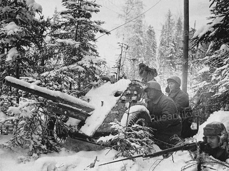 7. Расчёт 3,7 см немецкой противотанковой пушки Pak 35/36 ведёт бой.