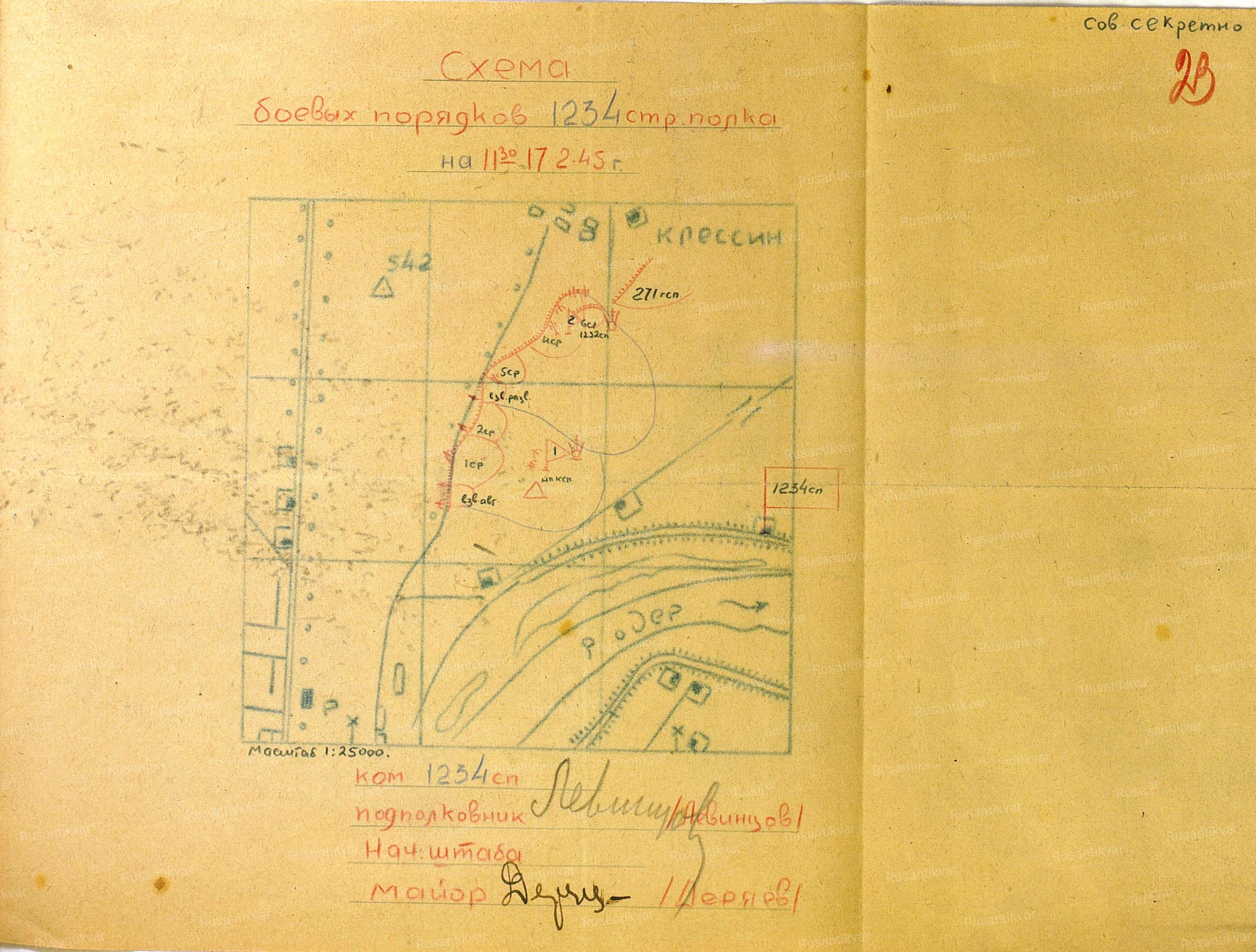 Схема обороны 1234 сп на 17.02.1945 г.