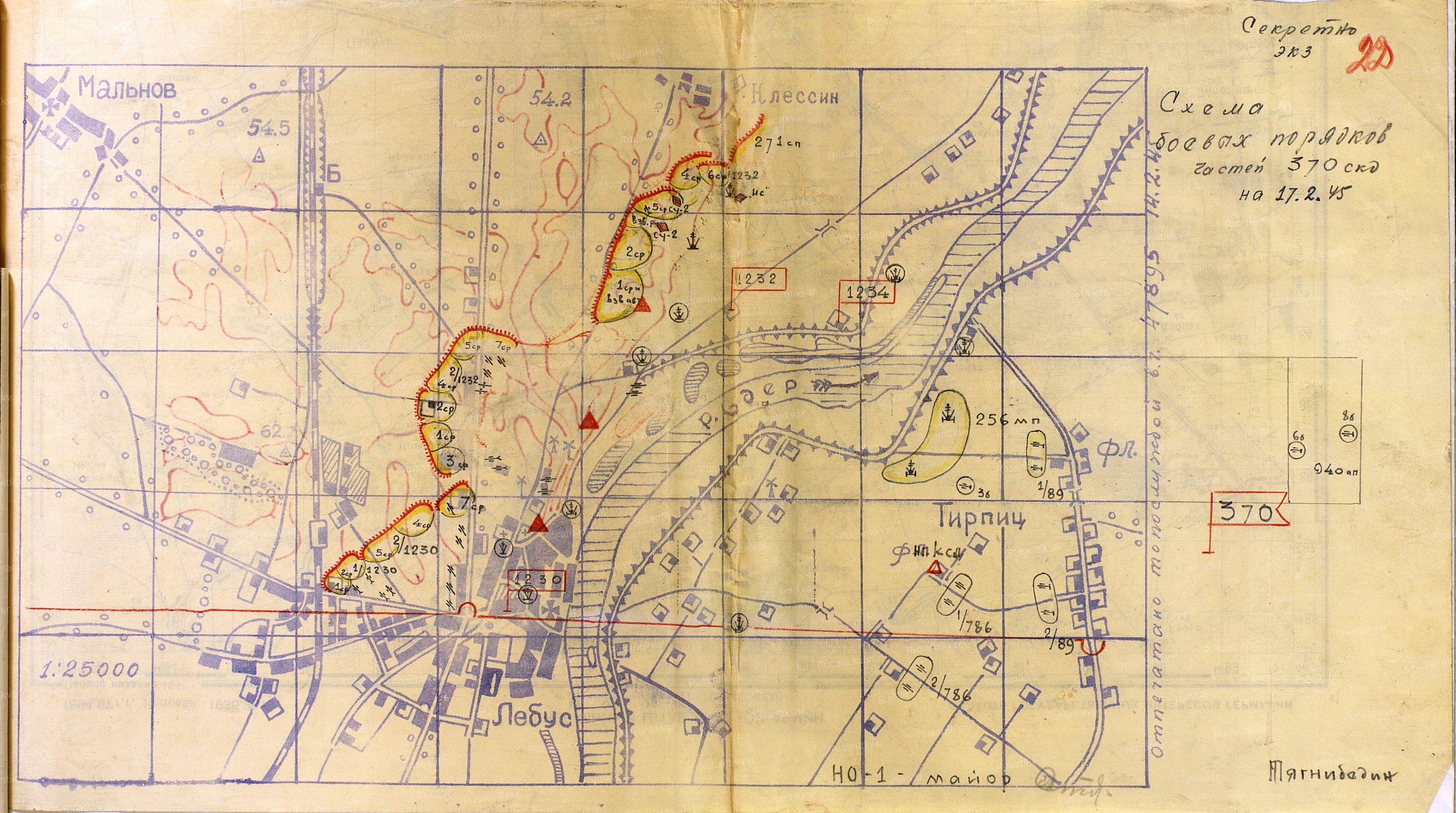 Схема боевых порядков частей 370 сд на 17.02.1945 г.