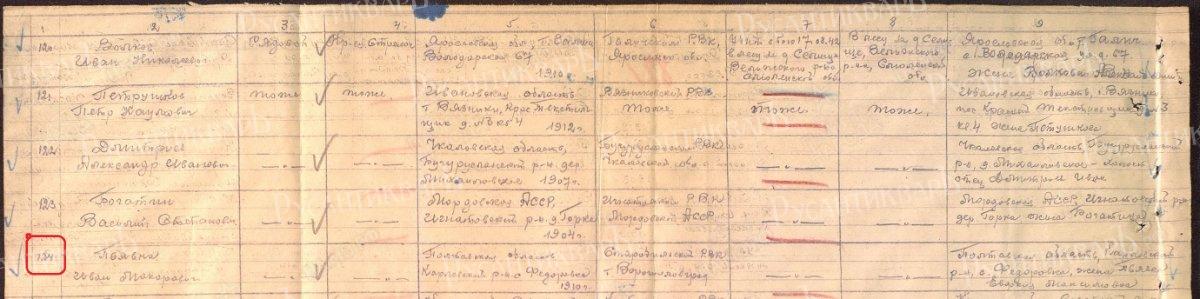 10. Фрагмент именного списка безвозвратных потерь Карловского РВК