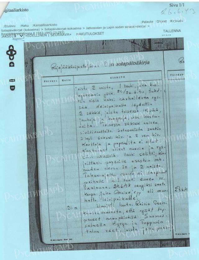 сканы документов – цифровой военный архив Финляндии (Digitaaliarkisto).