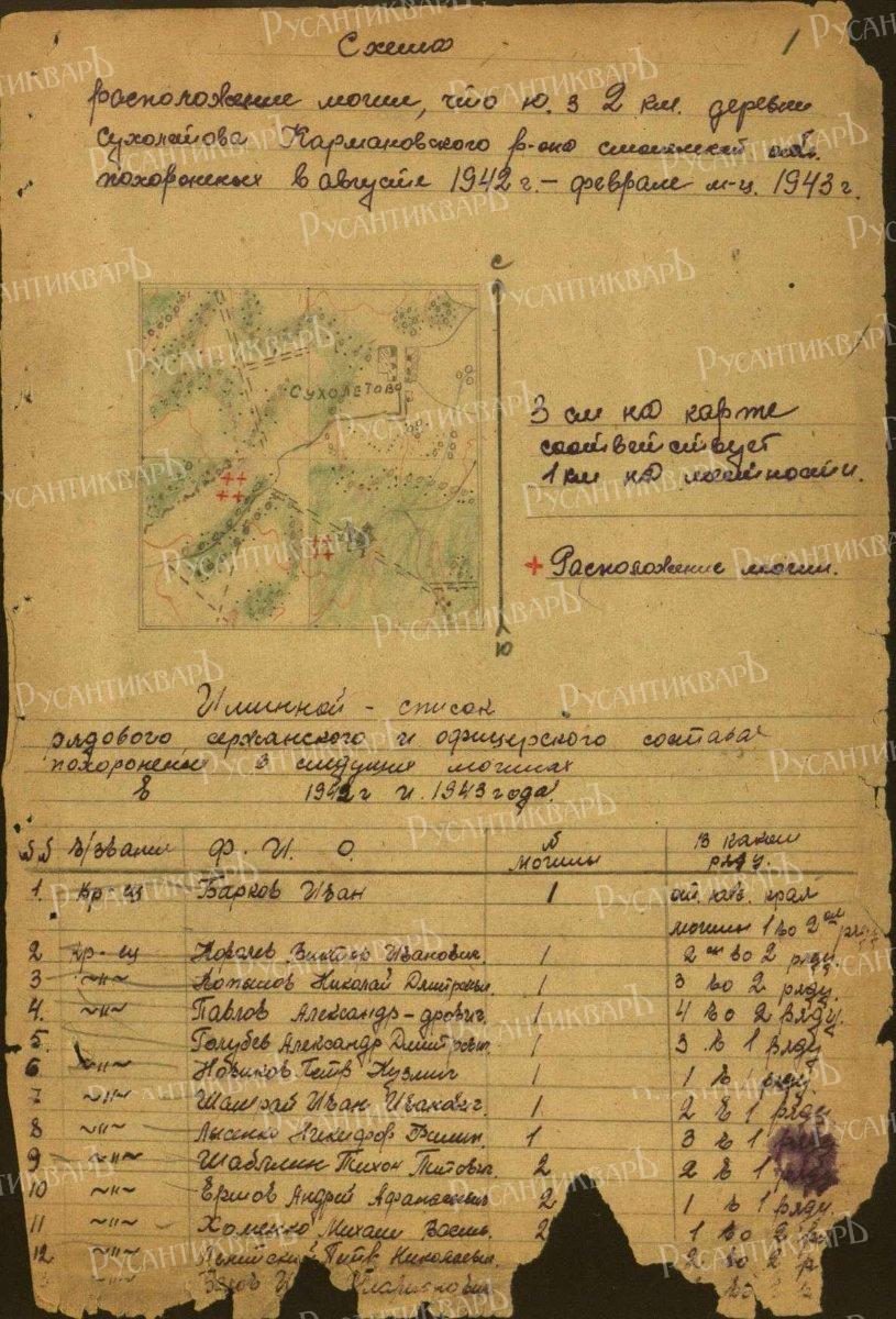 С Сухолетовым произошла другая история. Почти сразу после освобождения этой части территории бывшего Кармановского района от фашистов в конце августа 1942 года, здесь, недалеко в лесу, согласно донесениям из ОБД «Мемориал», расположились дивизионные медсанбаты 415-й и 312-й стрелковых дивизий. 244-й мсб 312-й сд просуществовал под Сухолетово почти до весны 1943 года, когда врага удалось отбросить дальше на запад. Упоминается под Сухолетово и 346-й медсанбат. Скорее всего, здесь располагались и другие полевые медицинские подразделения, информацию о которых нам пока найти не удалось.