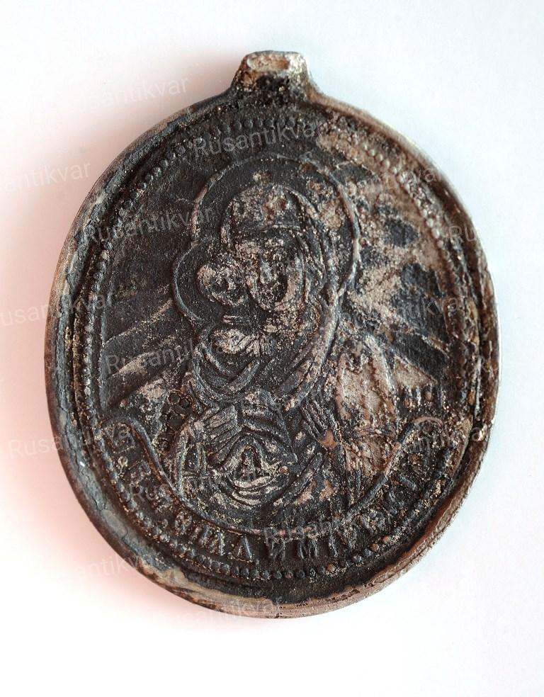 4-5. Нагрудная иконка «Богоматерь Владимирская - Тихон Калужский» до реставрации.