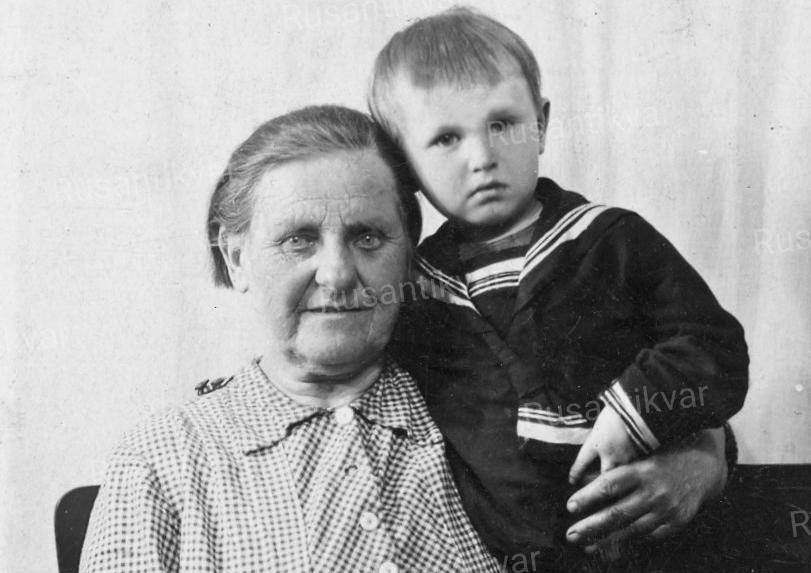 Фото 23. Эдик Макаров с бабушкой, 1942 год.