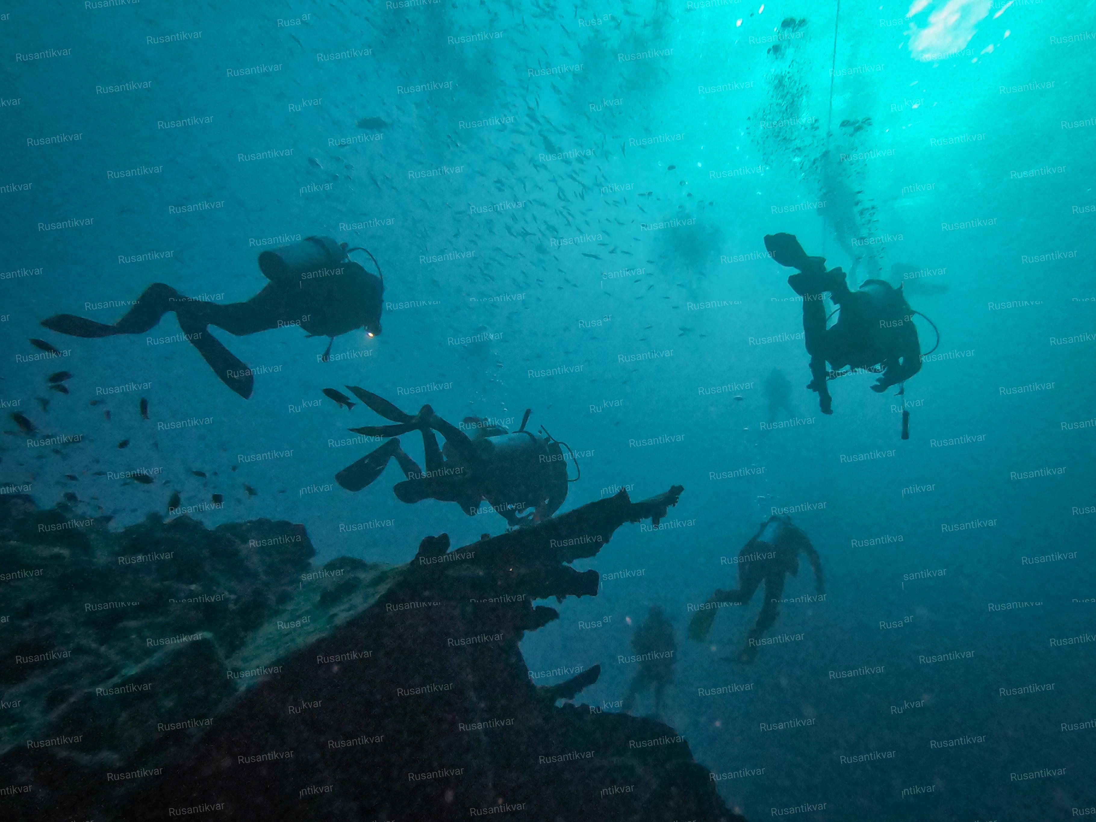 1. Участники клуба «ДИВО» погружаются к затонувшему кораблю.