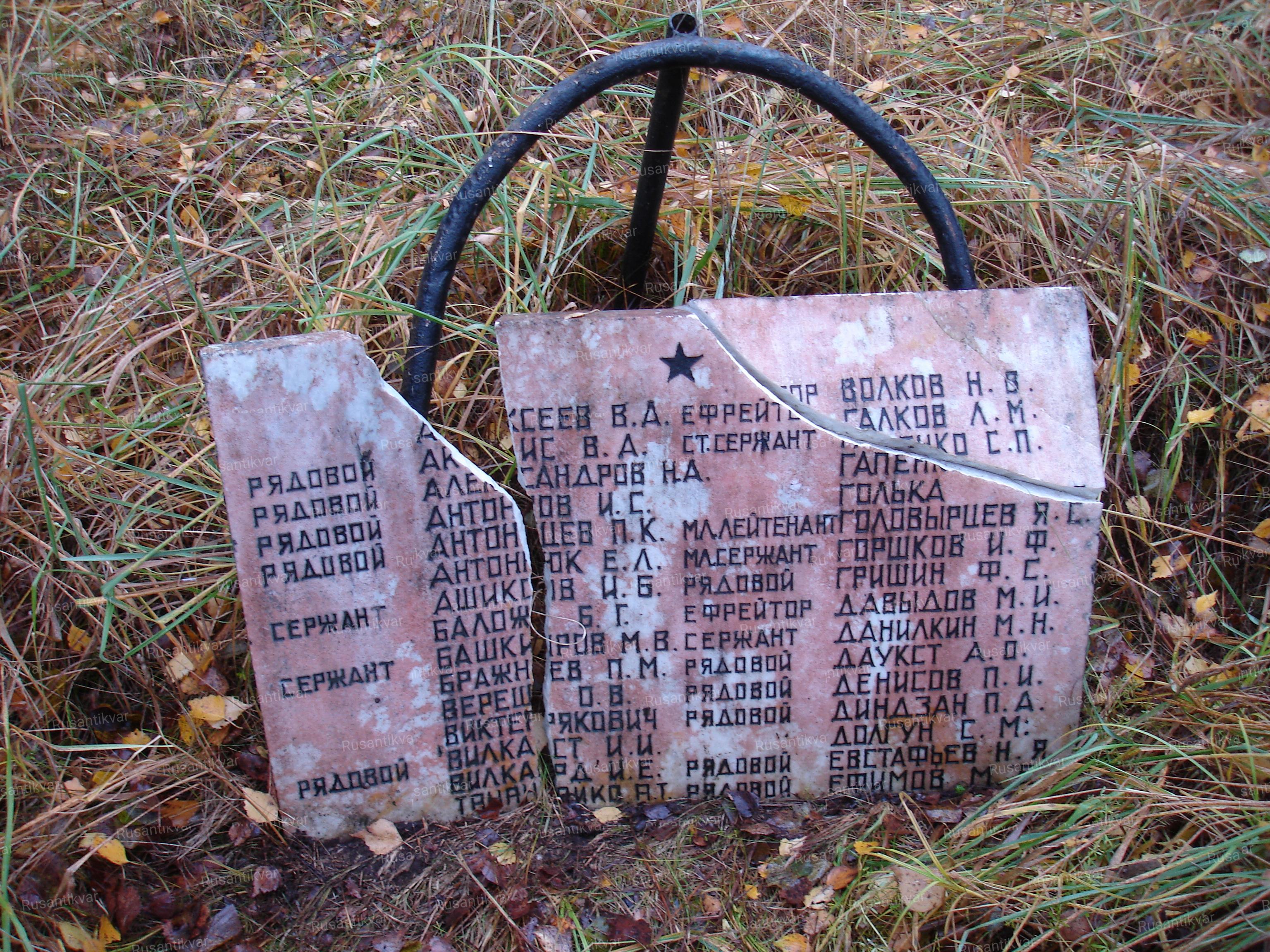 Далее. После войны проводится укрупнение воинских захоронений, создаются большие мемориалы. Как на них попадали имена с мест первоначального захоронения? Двумя путями. Первый – через местные органы власти, переписывавшие имена с памятных знаков, а потом передававшие их в райвоенкоматы (далее РВК). Имена по невнимательности составлявших списки лиц терялись на всем протяжении – кто-то в сельсовете не рассмотрел имя на памятном знаке, кто-то пропустил имя при распечатывании списка на печатной машинке, как в сельсовете, так и в РВК, какое-то имя пропустили при дальнейшем формировании общего списка. Понять, на каком именно этапе потерялось имя теперь уже вряд ли возможно. Да и не столь это важно. Вот, к примеру, мемориал в поселке Лиелауце бывшего Добельского района Латвии. Коллеги из поискового отряда «Патриот» предоставили уникальные данные из местного школьного архива, где были указаны не только населенные пункты, откуда перезахоранивали бойцов, не только их число, но и имена, даты жизни! Старательно жители латышской глубинки переписали чужие им имена, сохраняя память о солдатах. Но сравнение с плитами на мемориале печально. Так, из 12 имен воинов, похороненных в 300 метрах к югу от Лиелауце и перезахороненных, на плитах нового большого мемориала теперь есть только три!